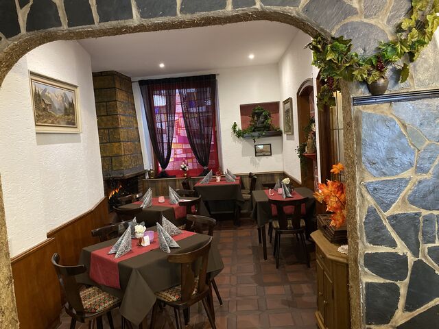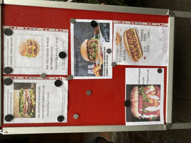 Unsere Empfehlung: Großer spieß mit Bratkartoffeln, dip ( Hähnchen oder Schweinefleisch) Und Beilage Salat, 1 Glas Wein-Bier